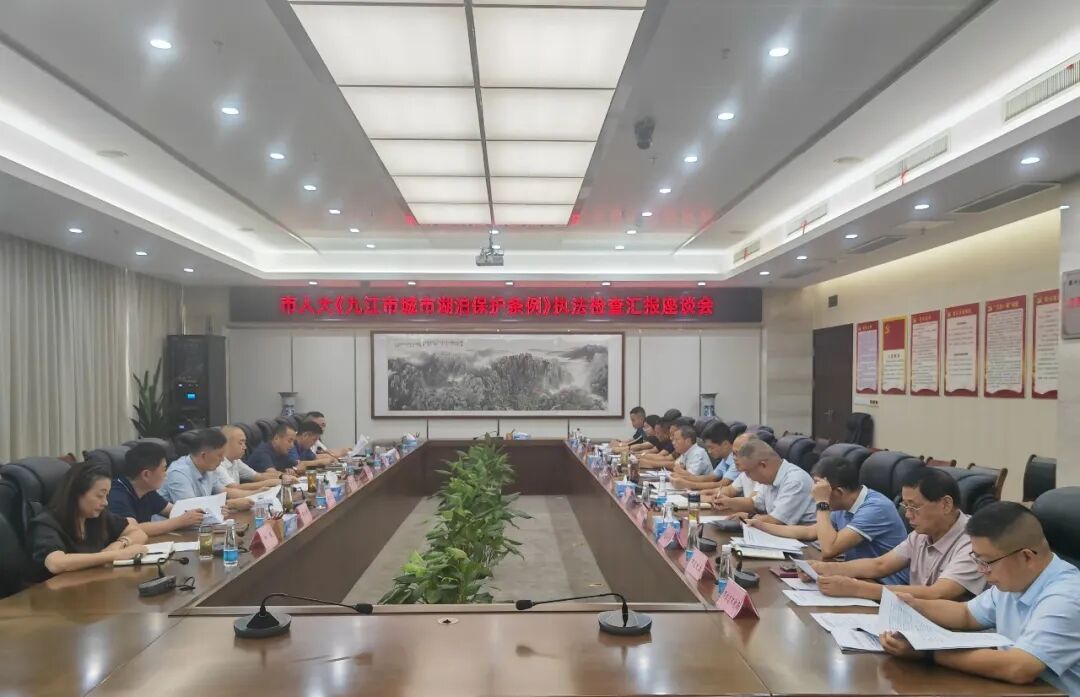 9月17日,市人大常委会召开《九江市城市湖泊保护条例》执法检查汇报座谈会。市人大常委会副主任胡迪出席。