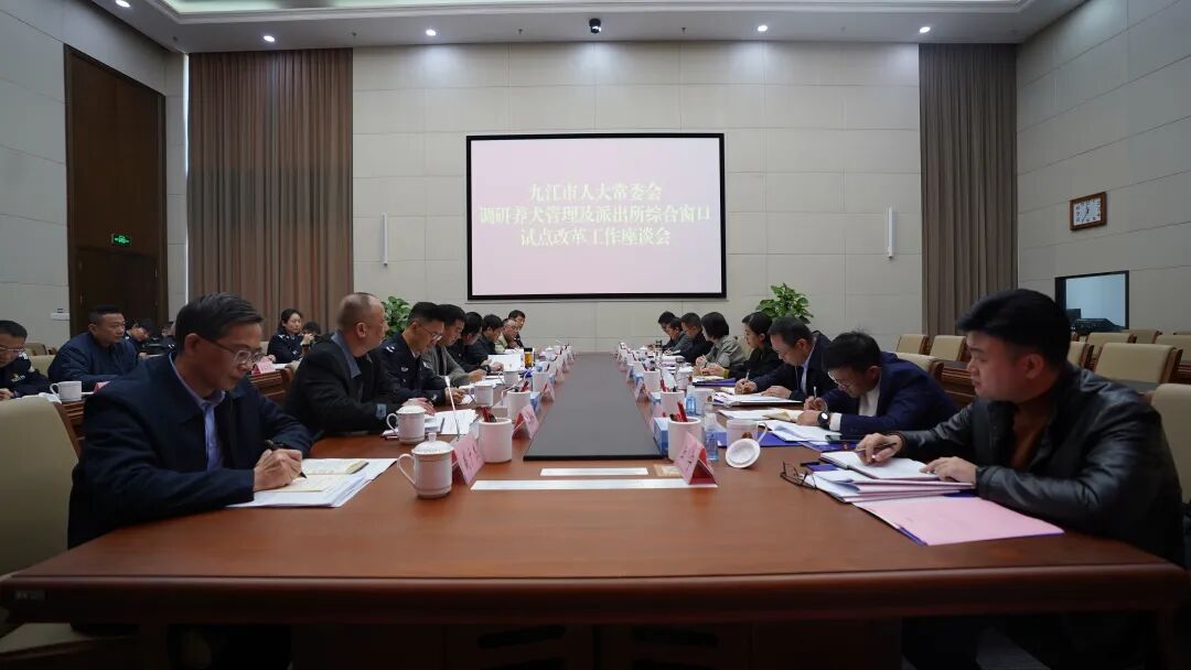廖奇志一行先后来到市流浪犬收容基地、濂溪区刘家塘派出所、市公安局等地,详细了解流浪遗弃犬只留检收容、派出所综合服务窗口及出入境接待大厅业务办理等方面情况。随后调研组召开座谈会,听取有关部门工作情况汇报,并进行深入交流。