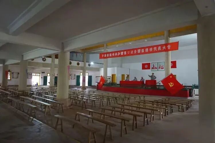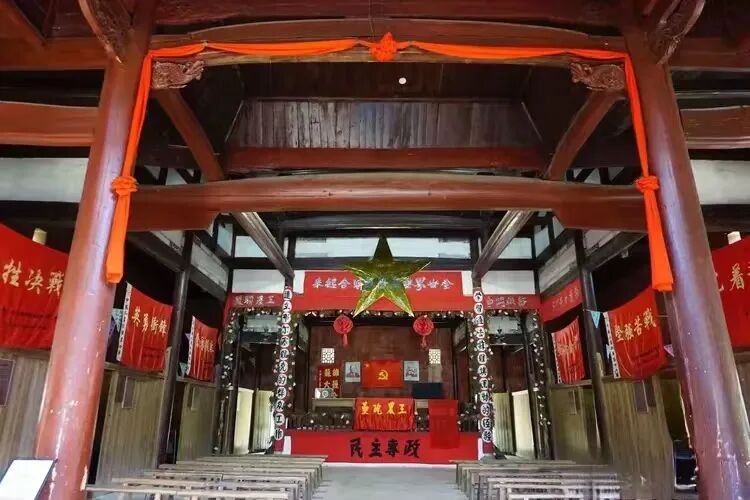 位于叶坪谢氏宗祠的“一苏大会”会址,修复如旧,庄严热烈。彩门上方嵌着大型的金色五星和“全世界无产者联合起来”的横幅,台前还挂有“工农堡垒”“民主专政”等各类标语。身处其中,让我恍如穿越到90多年前的“一苏大会”,参与到了瑞金群众盛大的提灯游行队伍中,在会场内外沸腾的掌声、欢呼声里,听到了中华苏维埃共和国临时中央政府已经成立的庄严宣告。